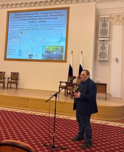 «Мой доклад был посвящён морским научным исследованиям на научно-исследовательских судах "Денеб" и "Профессор Панов" в Азовском, Чёрном и Каспийском морях и внутренних водах в 2024 году. Ежегодно при поддержке Минобрнауки РФ ЮНЦ РАН организует 20 экспедиций продолжительностью до 184 судосуток.