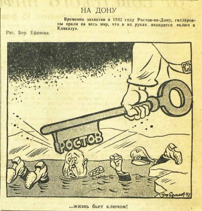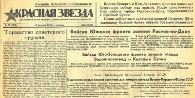 На фото: газета «Красная звезда»; бои за освобождение Ростова-на-Дону; рисунок Бориса Ефимова; историк Евгений Кринко и радиожурналист Андрей Мелехов.