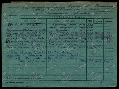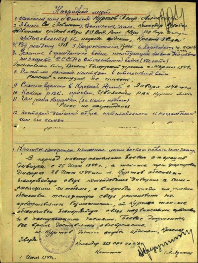 сведения о П.А. Куртове из электронного банка данных Минобороны РФ.