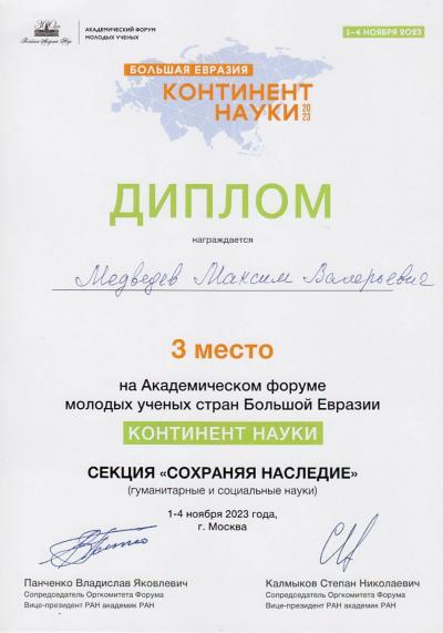 Исследование молодого учёного заняло 3 место среди лучших докладов по данному направлению.