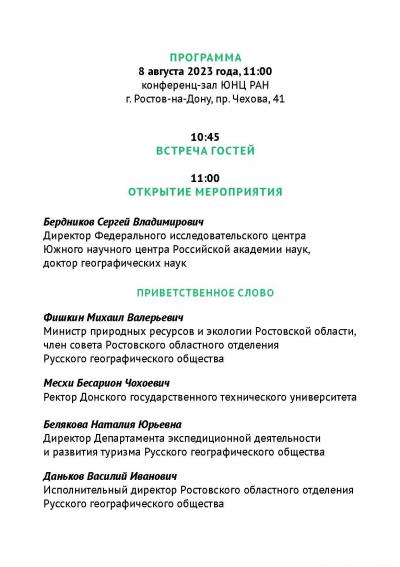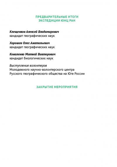 Мероприятие, посвященное предварительным итогам совместной экспедиции ЮНЦ РАН и Молодежного научно-волонтерского центра Русского географического общества на Юге России.