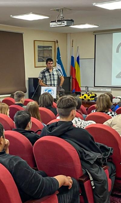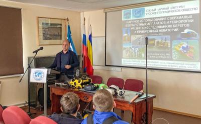 «В ходе лекции мы рассказали об итогах масштабной экспедиции ЮНЦ РАН "Стратегический водный путь из Азова в Каспий. Первый этап: экспедиция от устья до истоков Западного Маныча", проведенной летом текущего года под эгидой РГО, а также практическом опыте научного использования сверхмалых беспилотных аппаратов и технологии VR 360° в исследованиях берегов и прибрежных акваторий. Одним из интереснейших направлений работы Центра являются полевые исследования. На протяжении двух десятилетий, в рамках реализации государственного задания, а также при поддержке научных фондов и Русского географического общества экспедиционные отряды ЮНЦ изучают берега и акваторию Азовского моря, Цимлянского водохранилища, реки Дон, удивительную по красоте долину реки Маныч. Летом текущего года в рамках проведения комплексной экспедиции под эгидой РГО нам довелось исследовать природные ландшафты, растительно-животный мир, гидрологические особенности водоемов, изучить практики местного природопользования, социально-экономические и экологические проблемы долины Западного Маныча. Полевым обследованием выявлены и зафиксированы с применением метода экспедиционного панорамного (в формате VR 360°) видеодокументирования многочисленные природные и культурно-исторические достопримечательности. Был отснят ценный материал для разработки электронного путеводителя и нескольких короткометражных фильмов. В этой и прошлых экспедициях мы активно использовали новейшие образцы научного оборудования Центра коллективного пользования ЮНЦ (гидрологические и метеорологические приборы, различные датчики, сверхмалые беспилотные системы и пр., в том числе, и собственной разработки), которые мы и продемонстрировали ребятам».