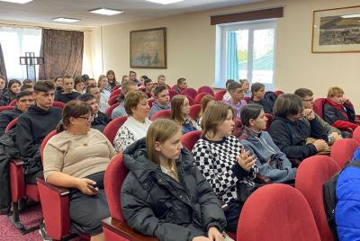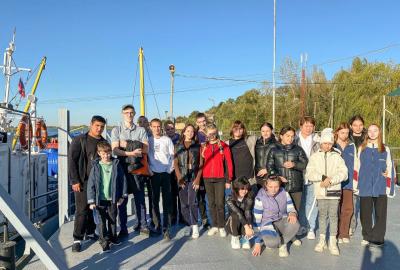 Начальник отдела инженерно-технического обеспечения ЮНЦ, к.ф.-м.н. Георгий Валов и научный сотрудник ЮНЦ Татьяна Польшина познакомили учеников Кагальницкой СОШ с различными площадками проведения научных работ на базе «Кагальник» – лабораторными корпусами, гидролого-метеорологическим постом, а также причальным комплексом и пришвартованным к нему НИС «Профессор Панов».