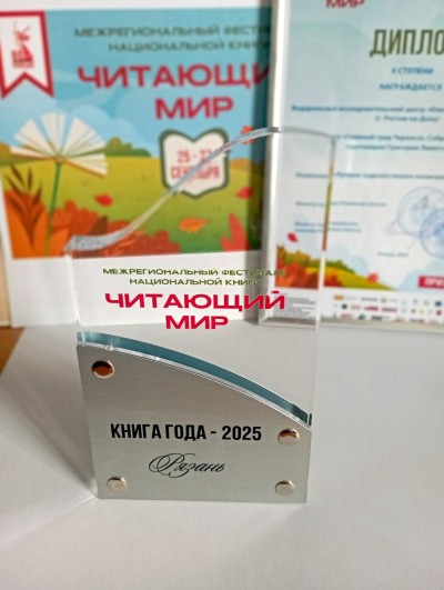 «25 сентября 2025 года в Рязанской областной универсальной научной библиотеке имени Горького в рамках фестиваля "Читающий мир", организатором которого является Правительство и Министерство культуры Рязанской области, областная универсальная научная библиотека имена Горького совместно с Российским книжным союзом, Ассоциацией книгоиздателей России, Общественной палатой Рязанской области и Рязанским библиотечным обществом, состоялась церемония объявления и награждения победителей фестиваля.