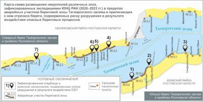 «В числе зафиксированных экспедициями ЮНЦ РАН в процессе рекогносцировочного обследования побережья Таганрогского залива был и Беглицкий некрополь скифского времени – объект археологического наследия федерального значения, расположенный в пределах аварийного участка берега, который подвергается интенсивному воздействию абразионных процессов. По прогнозам, в ближайшие пять лет в результате разрушения берега может быть потеряно более 1300 м2 территории данного памятника, что не может оставить нас равнодушными».