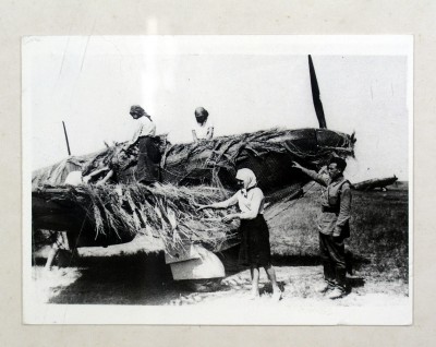 На фото: труженики тыла; девушки из колхоза «Путь Ильича» помогают летчикам
