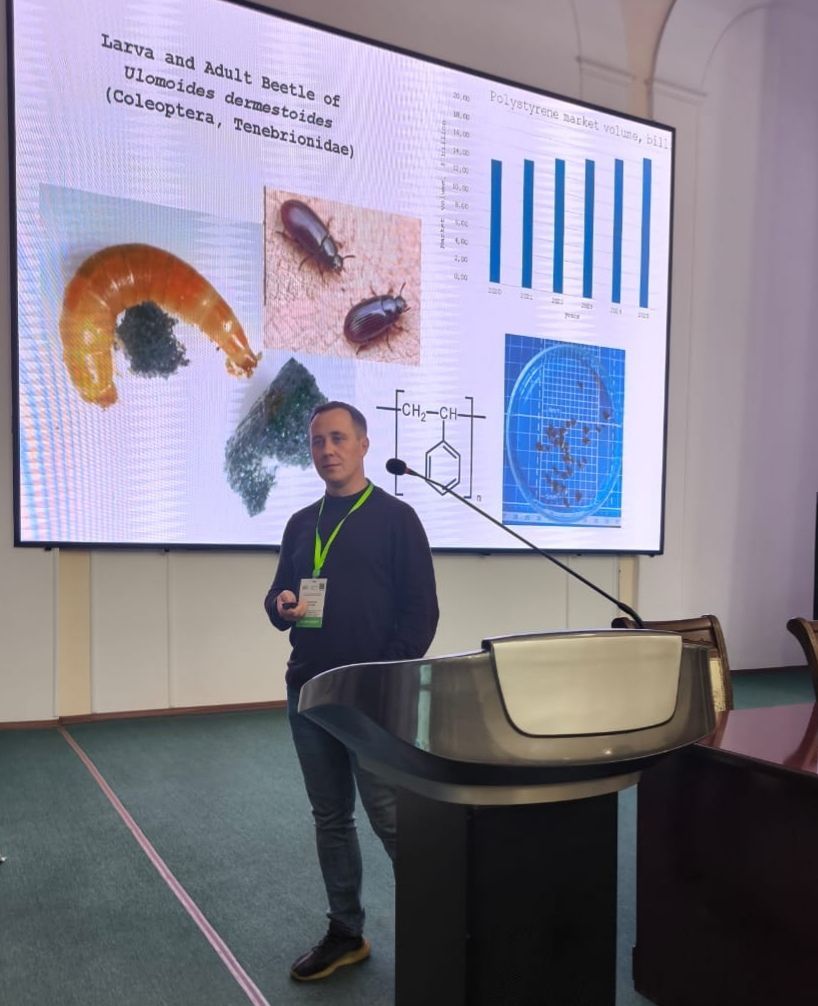 Результаты исследования были представлены на III Международной конференции «Микропластик в науке о полимерах» в Узбекистане. Тема доклада: «Изучение выделений личинок Ulomoides dermestoides при биоконверсии пластика на основе полистирола».