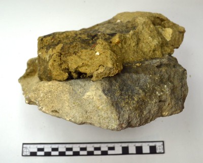 Рис. 1. Камень из постройки середины 2 в. н.э. с сохранившимся цементным раствором.