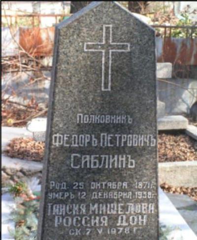 - надгробие на могиле Ф. П. Саблина на княжеском кладбище в Софии (Болгария).