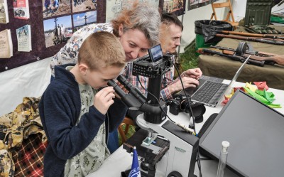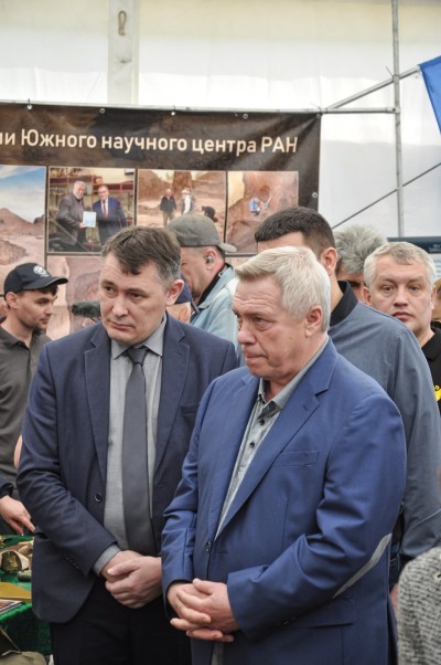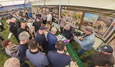 «Учёными ЮНЦ РАН во главе с заместителем директора по научной работе Валерием Владимировичем Стахеевым было развёрнуто несколько тематических научных экспозиций, посвящённых результатам гиробиологических, ихтиологических, археологических, военно-исторических исследований на территории Ростовской области. На отдельных выставочных модулях Центра также было представлено современное научное оборудование, используемое в экспедициях и камеральной обработке данных, а также в деле визуализации полученных полевых результатов (беспилотные системы, электронные микроскопы и фототехника, гарнитура виртуальной реальности, VR-видеокамеры и пр.).