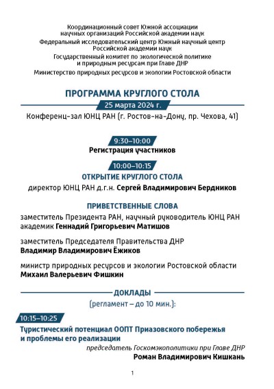 КРУГЛЫЙ СТОЛ, 25 марта 2024 г., Конференц-зал ЮНЦ РАН