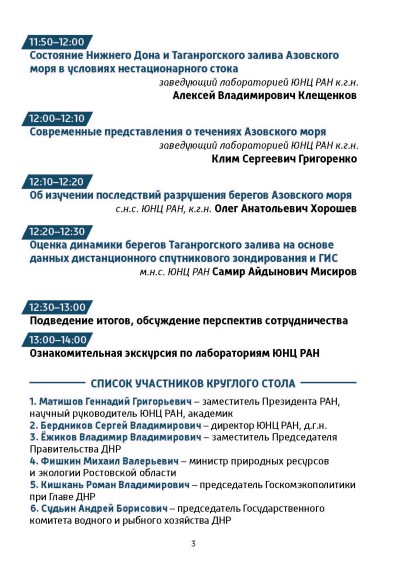 КРУГЛЫЙ СТОЛ “Влияние приустьевых процессов реки Дон на экологию Азовского моря”