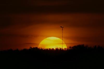 2023 год. На фоне заката Мачта с Флюгером, который трудится без перерыва и выходных, это только верхняя часть метеостанции с бортовым названием «МАНЫЧ-1008». Метеопост передает информацию об окружающей среде каждые 10 минут (данные о направлении ветра, температуре, относительной влажности, абсолютном давлении и точке росы попадают на сайт https://meteo.ssc-ras.ru/#)