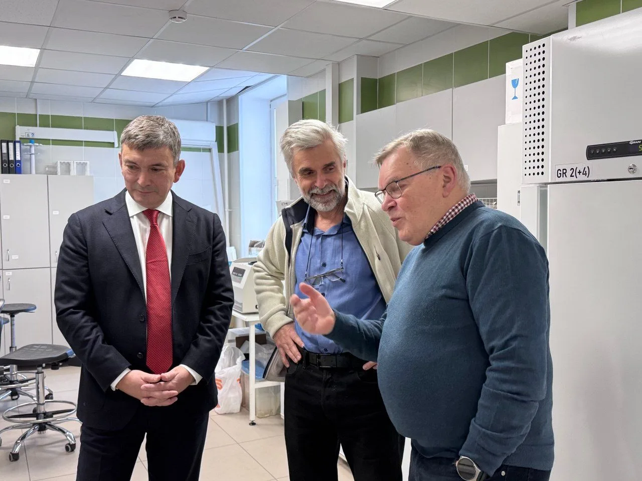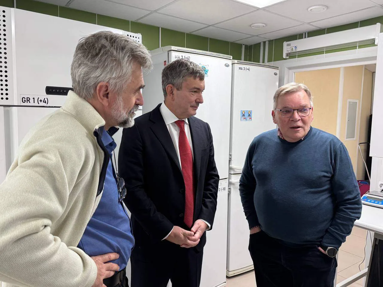 Затем, в сопровождении директора ВНИРО Сергей Бердников посетил лабораторный комплекс. Во время осмотра лабораторий Сергей Владимирович обратил внимание на его оснащение и пообщался с ведущими учеными, а затем посетил аквариальный комплекс, где осуществляются работы по выращиванию осетровых и других ценных видов рыб и беспозвоночных как в пресной, так и в морской воде.