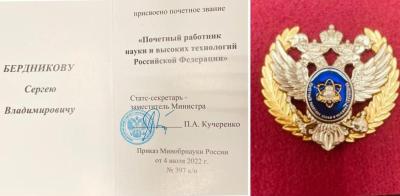 Директору ЮНЦ РАН д.г.н. Сергею Бердникову присвоено звание «Почётный работник науки и высоких технологий Российской Федерации»