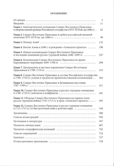 «Монография посвящена малоизученному азово-черноморскому направлению политики Петра I, с которым связаны его первые новации и военные успехи. В 1696–1711 годах в Северо-Восточном Приазовье была предпринята уникальная попытка реализовать масштабный колонизационный проект, призванный обеспечить продвижение России в Черное море. Заключение Константинопольского мира с Османской империей и начало Северной войны в 1700 году лишь отсрочили воплощение этих планов. За 15 лет на берегах Азовского моря была создана новая административно-территориальная единица с многотысячным населением, основана первая в истории России военно-морская база и построен ряд крепостей. В это же время был получен ценный опыт пограничного взаимодействия с Османской империей и Крымским ханством, но попытка нормализовать конфликтогенную ситуацию в регионе не удалась. Из-за военного поражения царя в Прутском походе 1711 года “Азовский проект” потерпел крах и на три столетия оказался в тени громких побед России над шведами и территориальных приобретений на Балтике, что предопределило и его историографическую судьбу».