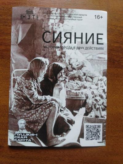 С 15 по 17 июня в Волгоградском Новом экспериментальном театре (НЭТ) состоялась премьера документального спектакля «Сияние. История города в двух действиях», посвященного 80-летию победы в Сталинградской битве. Спектакль поставлен режиссером Дмитрием Егоровым (г. Санкт-Петербург), автор сценария Лара Бессмертная. В его основу положена книга «Дети и война: Сталинградская битва и жизнь в военном Сталинграде в воспоминаниях жителей города / Под ред. М.А. Рыбловой – Южный научный центр РАН» - Волгоград, 2014.