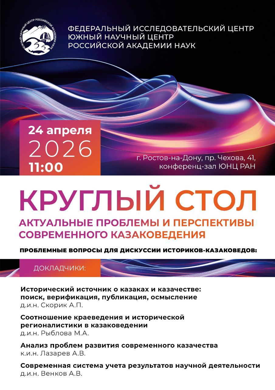 24 апреля 2026 г. в 11:00 в малом зале ЮНЦ РАН