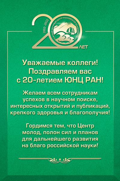 Поздравляем с 20-летием ЮНЦ РАН!