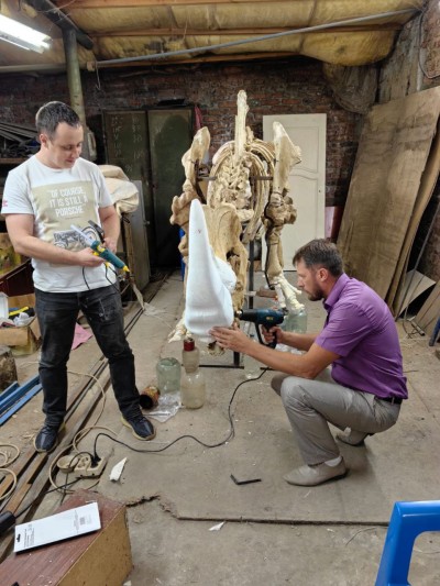На создание каждого элемента затрачено порядка 20 часов, сборку осуществили с помощью специального клея и паст собственного изготовления. Общий вес копии порядка 1,9 кг при максимальном габаритном размере в 50 см».