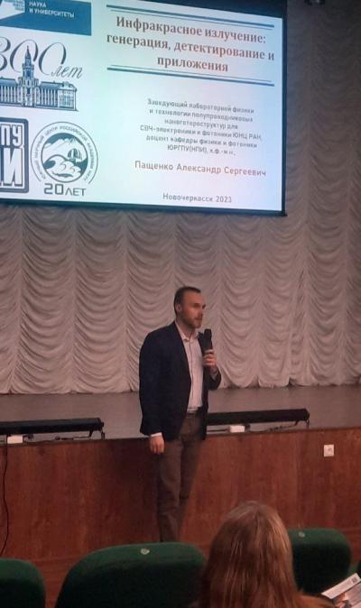 Заведующий лабораторией физики и технологии полупроводниковых наногетероструктур для СВЧ-электроники и фотоники ЮНЦ РАН, кандидат физико-математических наук Александр Пащенко выступил с лекцией на тему:
