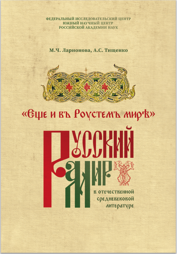 Ларионова М.Ч., Тищенко А.С. «Еще и въ Роустемъ мирѣ»: русский мир в отечественной средневековой литературе. – Ростов-на-Дону: Издательство ЮНЦ РАН, 2026. – 232 с. – ISBN 978-5-4358-0276-4. Выражение «русский мир» мы слышим сейчас ежедневно. Однако что такое русский мир? Когда эта тема появилась и как существовала в русской средневековой литературе? Какими подтемами, образами и мотивами наполнялась в разные периоды в связи с разными историческими обстоятельствами? На эти вопросы авторы дают ответы в этой книге. Монография в первую очередь предназначена литературоведам и ценителям высокодуховной русской литературы, но будет интересна и полезна историкам, политологам, культурологам, общественным деятелям и всем, кто задумывается о прошлом, настоящем и будущем нашего отечества.